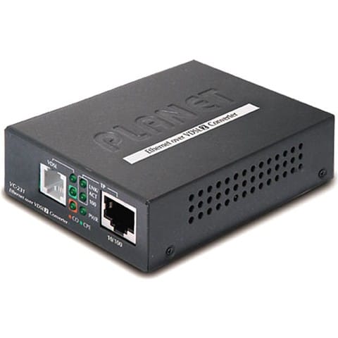 Thiết bị VC-231 Planet là thiết bị chuyển đổi từ Ethernet sang VDSL2 với hiệu năng cao. Thiết bị được thiết kế dựa trên 2 công nghệ mạng chính là Ethernet và VDSL2. Công nghệ VDSL2 cho phép truyền dữ liệu thông qua đường dây điện thoại sẵn có với tốc độ nhanh nhất mà không cần đi dây lại. Thiết bị VC-231 hỗ trợ hiệu năng cao trên đường dây điện thoại sẵn có với tỉ lệ dữ liệu truyển theo kiểu đối xứng tới 100/ 100 Mbps với khoảng cách 300m và 50/ 2Mbps cho khoảng cách xa hơn.