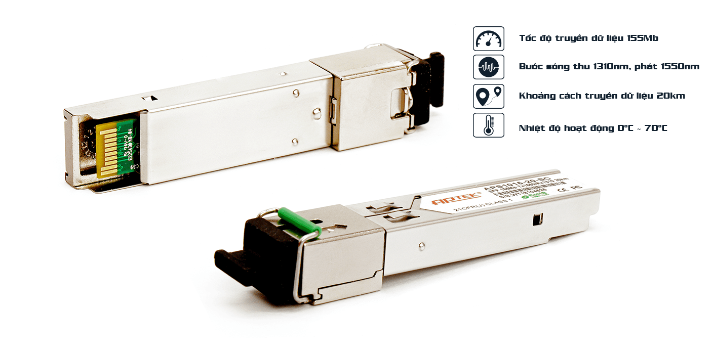 Module quang SFP APTEK – APS1113-20 | Module quang SFP 1.25Gbps, Single-Mode, 20km, 1310/1550nm, 1 sợi, DDM
